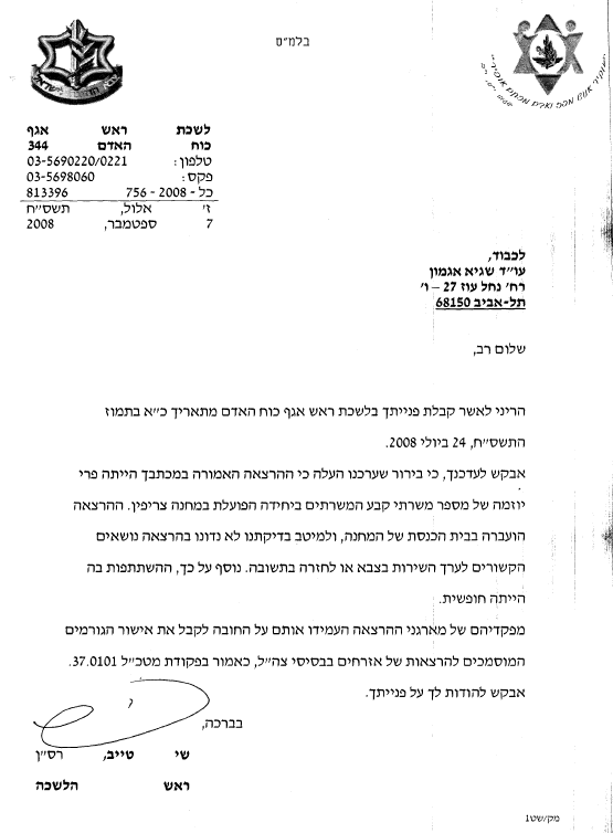 מפורשות בפקודת מטכ"ל משנת 1986. למותר לציין שגם עטיפת ההחזרה בתשובה בדברי נועם