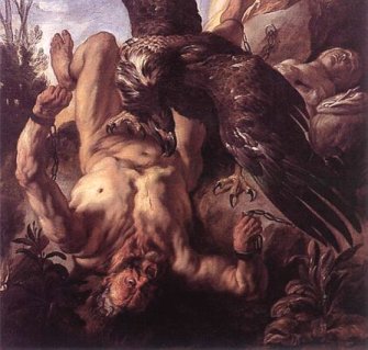 נשר מגיע מדי יום ואוכל את כבדו, ומידי ערב היה חוזר הכבד וגדל מחדש, וכך חוזר חלילה