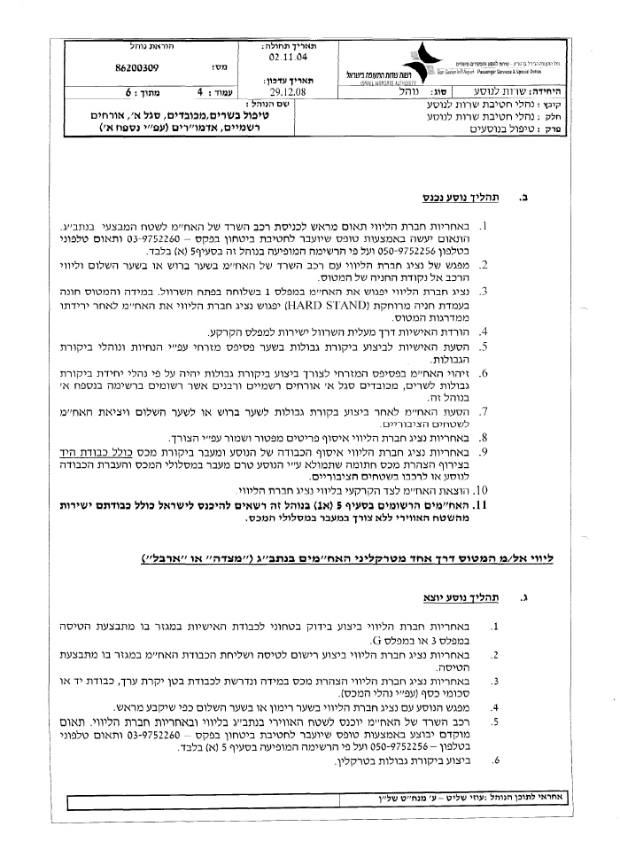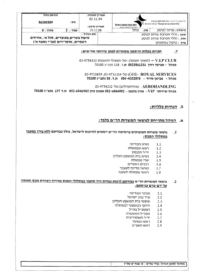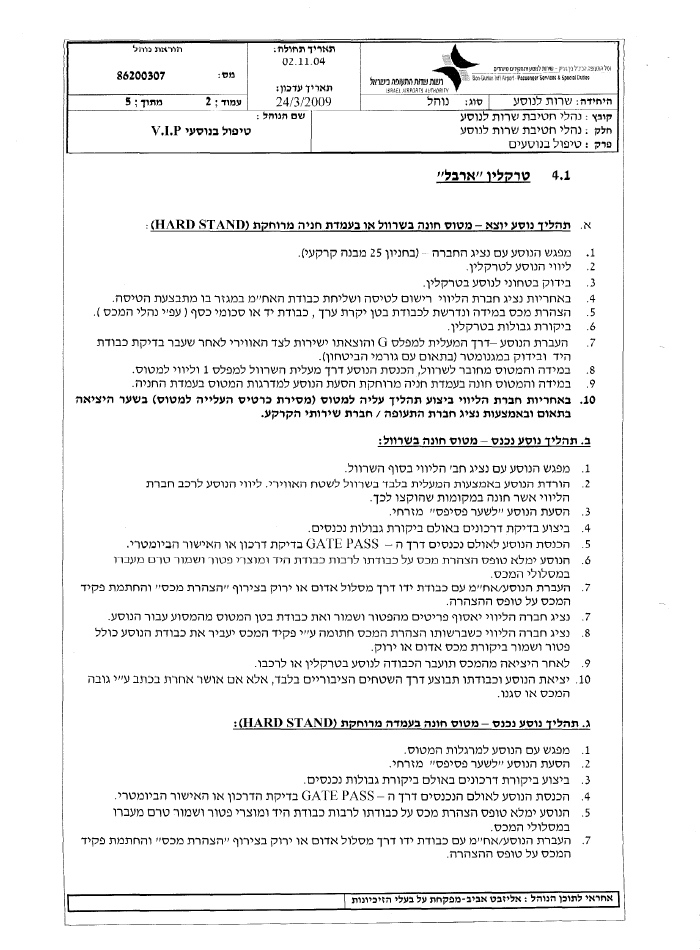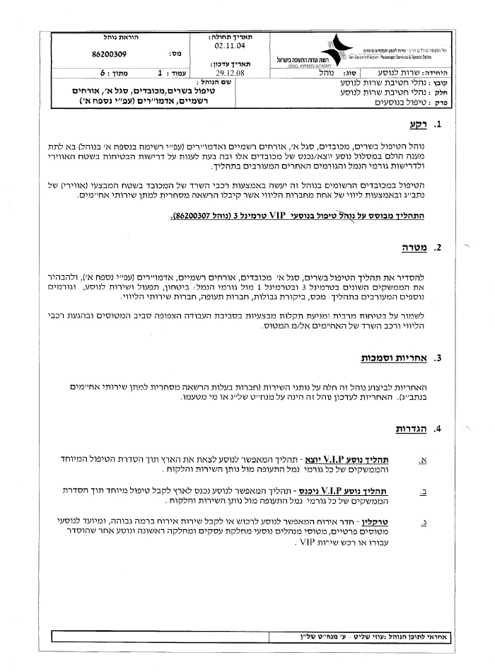 על כולם חל נוהל מס' 86200309 של רשות שדות התעופה - נוהל המאפשר למכובדים המופיעים בו