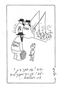 סממנים ודמויות דתיות-חרדיות, ועם זה - בלא כל איבה ושנאה חלילה [=רגישות] כלפי הצד המנוגד, החרדי-דתי.