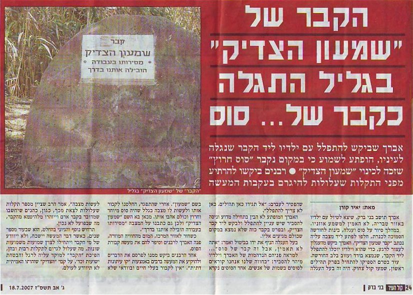 העיתון החרדי "קול העיר" מדווח שקבר שמעון הצדיק, אשר אברכים רבים היו עולים אליו לרגל,