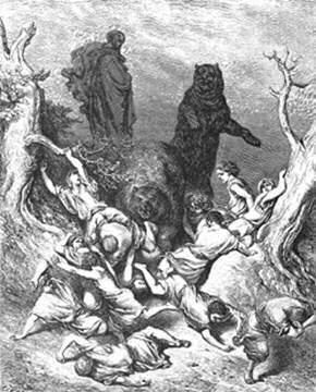בשם יהוה ותצאנה שתים דובים מן היער ותבקענה מהם ארבעים ושני ילדים" (מלכים