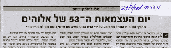 תואמצעה םוי" םשב קחש-ןיקפיל ילט תאמ עיתפמ רמאמ עיפוה 29.4.2001 םוימ "בירעמ"ב