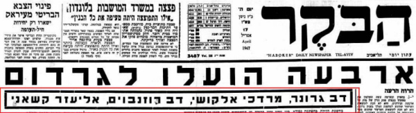 אלקחי, יחיאל דרזנר (שנודע בשם דב רוזנבוים) ואליעזר קשאני. האם תלייתם נובאה על ידי ארבע האותיות בעלות הגודל השונה?