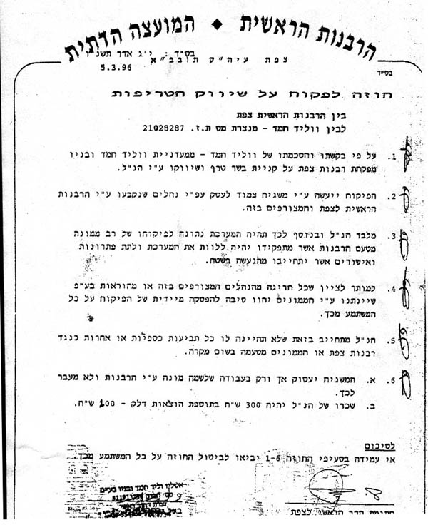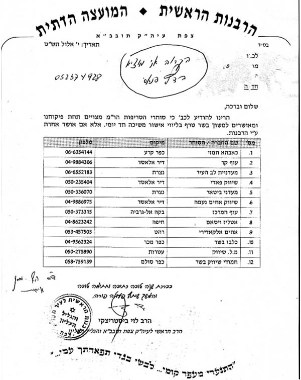 מסמך מדהים אחד הוא (אני מצטט): "חוזה לפיקוח על שיווק הטריפות". כן, אני לא טועה, זהו מסמך מטעם הרבנות הראשית. יש בו הכל בחוזה הזה: מי יהיה הרב (שיכשיר), איום בסנקציות באם לא יקפידו (הפסקת הפיקוח כמובן, ואז הבשר כנראה יהפוך מטרף-כשר לטרף-טרף). וכמובן, איך לא: קביעת שכרו של המשגיח. כסף ורק כסף הוא שם המשחק, ומכאן ועד חביתת ביקון כשרה הדרך קצרה.